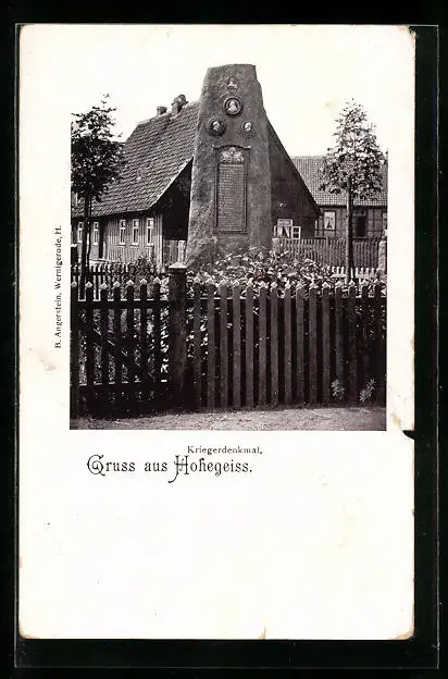 AK Hohegeiss, Blick auf das Kriegerdenkmal