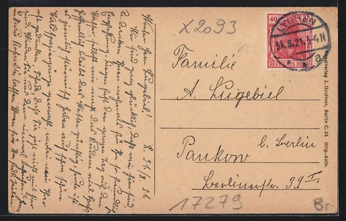 alte Ansichtskarte, gelaufen 1921, Eckknick li. oben, guter Zustand