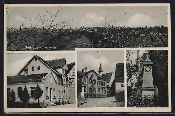 AK Hohenacker, Gasthaus zum Hirsch, Denkmal, Ortsansicht