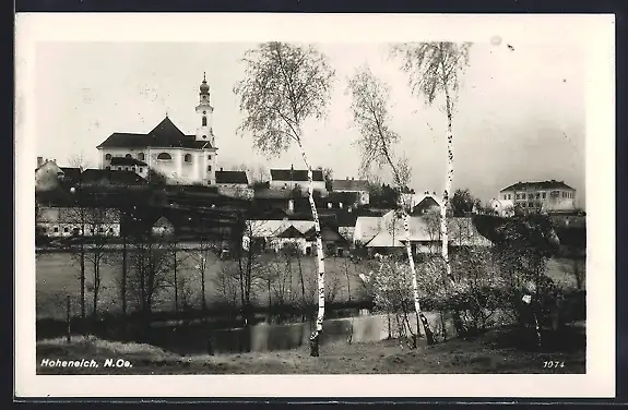 AK Hoheneich /N.-Ö., Ortspanorama von einem Gewässer aus