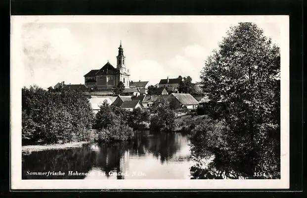 AK Hoheneich bei Gmünd, Uferpartie mit Kirche