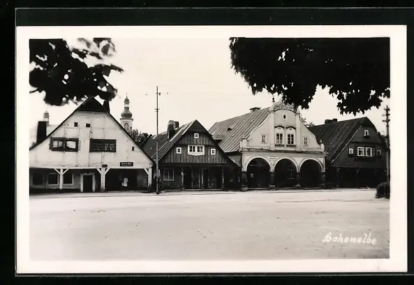 AK Hohenelbe, Ortsansicht mit Friseur Fr. Bittner