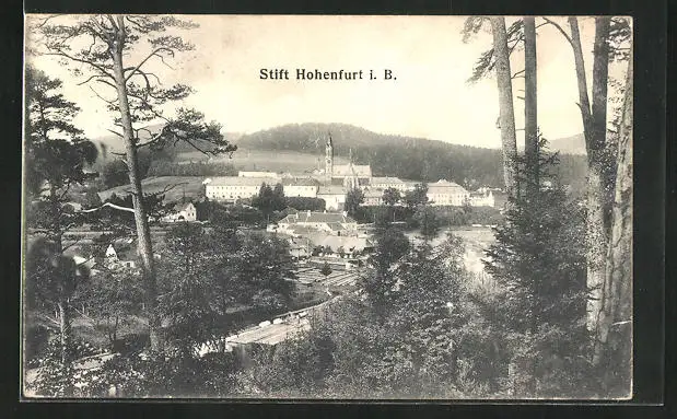 AK Hohenfurt, Ortsansicht aus dem Wald heraus