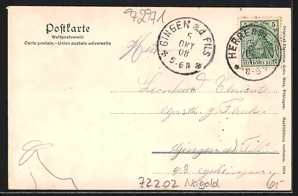 Weitere Ansichtskarten zur Postleitzahl 72202