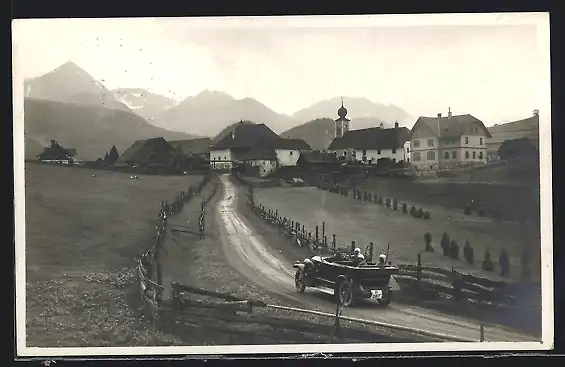 AK Hohentauern, Automobil bei der Einfahrt in die Ortschaft