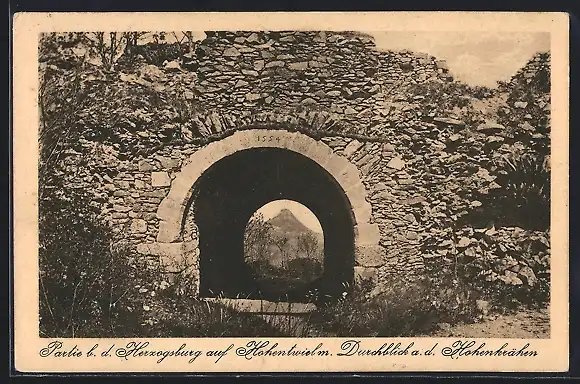 AK Hohentwiel, Herzogsburg, Durchblick a. d. Hohenkrähen