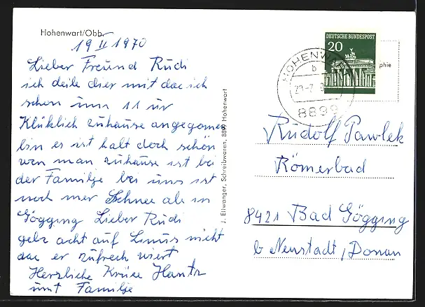 gelaufen 1970, Eckknick re. oben, guter Zustand