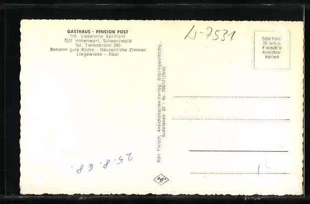 AK Hohenwart /Schwarzwald, Gasthaus-Pension Post