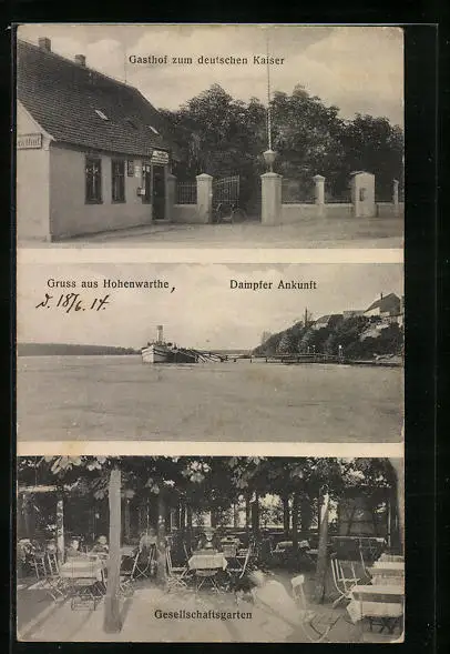 AK Hohenwarthe, Gasthof zum deutschen Kaiser, Dampfer-Ankunft