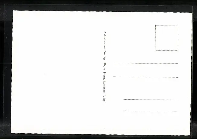 Personenbezogene Daten auf der Rückseite der Karte wurden durch blauen Textmarker unkenntlich gemacht. Die blauen Stellen sind auf die Vorderseite durchgeweicht und wirken sich negativ auf das Postkartenfoto aus
