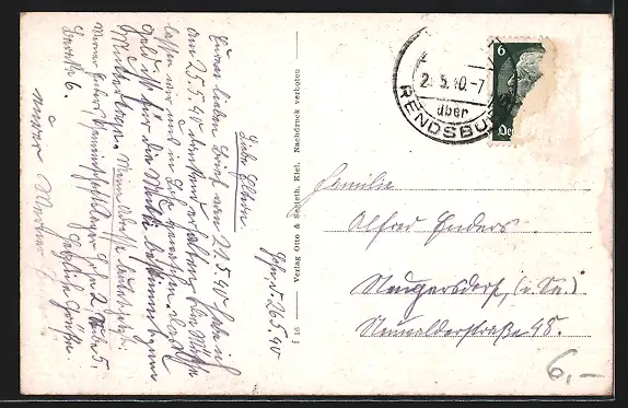 alte Ansichtskarte, gelaufen 1940, Briefmarke entfernt, rückseitig Klebe- und Papierreste, Bugspur li. mittig, guter Zustand