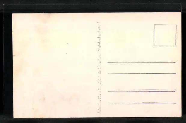 Personenbezogene Daten auf der Rückseite der Karte wurden durch blauen Textmarker unkenntlich gemacht. Die blauen Stellen sind auf die Vorderseite durchgeweicht und wirken sich negativ auf das Postkartenfoto aus