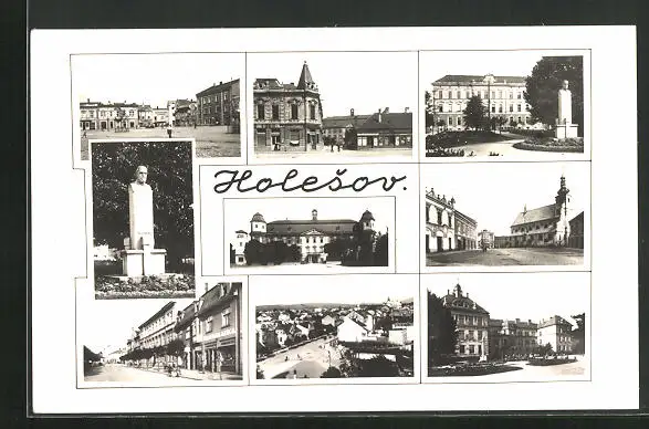AK Holesov, Stadtansichten mit Denkmal, Strassen und Gebäuden