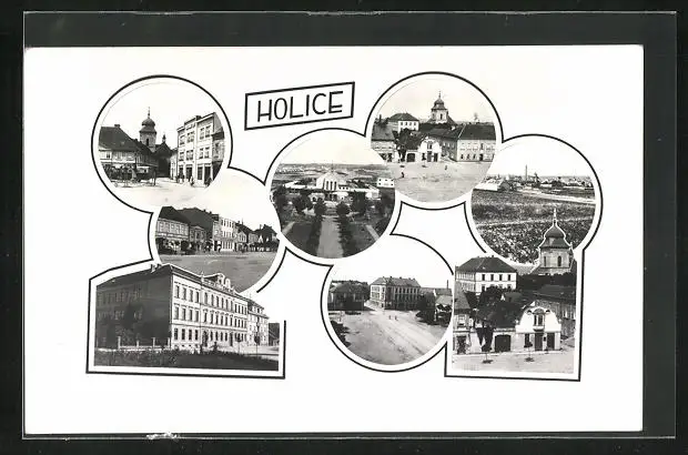 AK Holice, Gebäudeansicht, Strassenpartie mit Kirche, Ortspartie