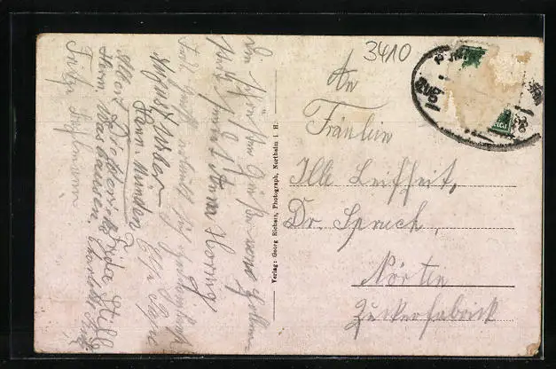 alte Ansichtskarte, gelaufen, Briefmarke tw. entfernt, rückseitig Oberflächenschaden, guter Zustand
