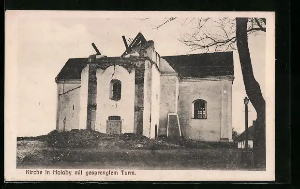 AK Holoby, Kirche mit gesprengten Turm