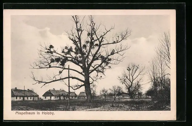 AK Holoby, Ortspartie mit Mispelbaum