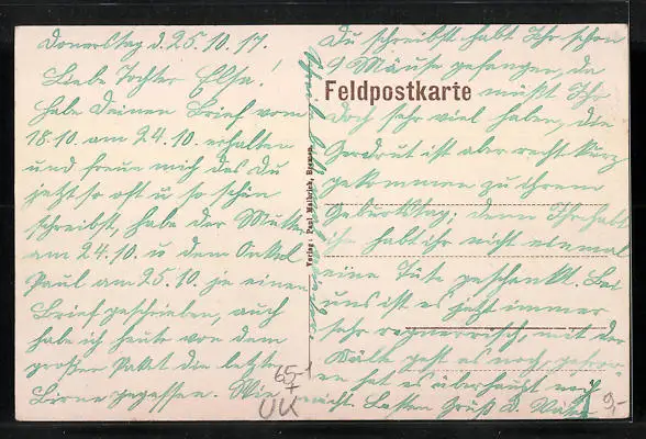 Personenbezogene Daten auf der Rückseite der Karte wurden durch blauen Textmarker unkenntlich gemacht. Die blauen Stellen sind auf die Vorderseite durchgeweicht und wirken sich negativ auf das Postkartenfoto aus