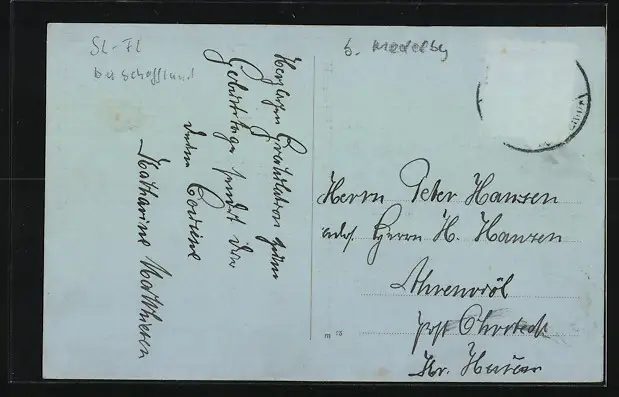 alte Ansichtskarte, gelaufen, Briefmarke entfernt, rückseitig Oberflächenschaden, guter Zustand