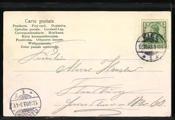 alte Ansichtskarte, gelaufen 1903, Stempelspur, guter Zustand