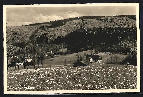AK Holzhau /Erzg., Ortsansicht mit blühender Wiese
