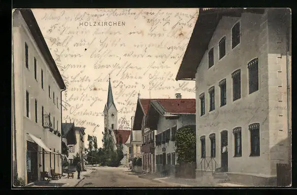 AK Holzkirchen, Strassenpartie mit Kirche