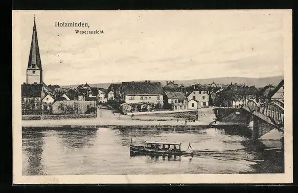 AK Holzminden, Flusspartie mit Blick zum Kirchturm