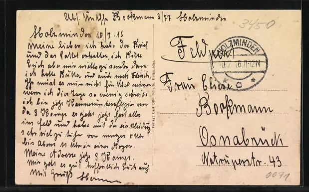 alte Ansichtskarte, gelaufen als Feldpost 1916, guter Zustand