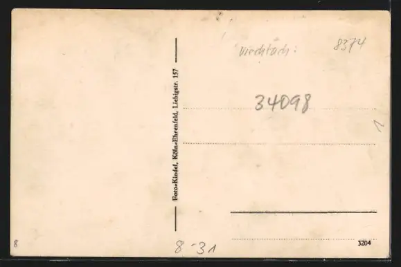 Personenbezogene Daten auf der Rückseite der Karte wurden durch blauen Textmarker unkenntlich gemacht. Die blauen Stellen sind auf die Vorderseite durchgeweicht und wirken sich negativ auf das Postkartenfoto aus