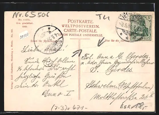 alte Ansichtskarte, gelaufen 1906, rückseitig Klebe- und Papierreste, guter Zustand