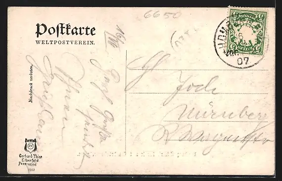 alte Ansichtskarte, gelaufen 1907, guter Zustand
