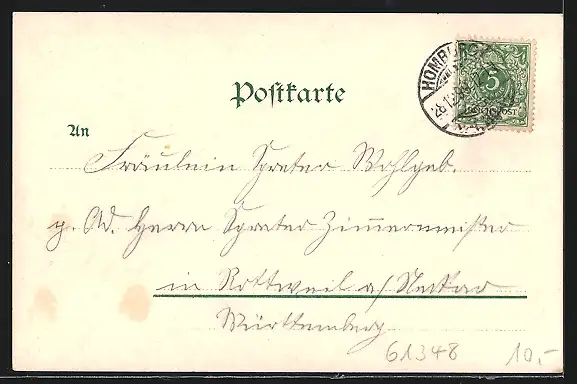 alte Ansichtskarte, gelaufen 1899, guter Zustand