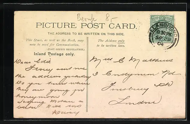 alte Ansichtskarte, gelaufen 1904, Eckknick unten re., Stempelspur, guter Zustand