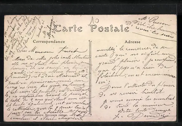Personenbezogene Daten auf der Rückseite der Karte wurden durch blauen Textmarker unkenntlich gemacht. Die blauen Stellen sind auf die Vorderseite durchgeweicht und wirken sich negativ auf das Postkartenfoto aus