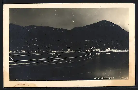 AK Hong Kong, Ortsansicht bei Nacht vom Wasser aus