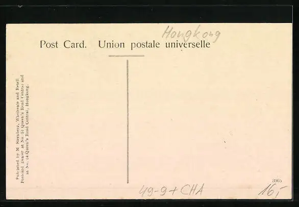 Personenbezogene Daten auf der Rückseite der Karte wurden durch blauen Textmarker unkenntlich gemacht. Die blauen Stellen sind auf die Vorderseite durchgeweicht und wirken sich negativ auf das Postkartenfoto aus