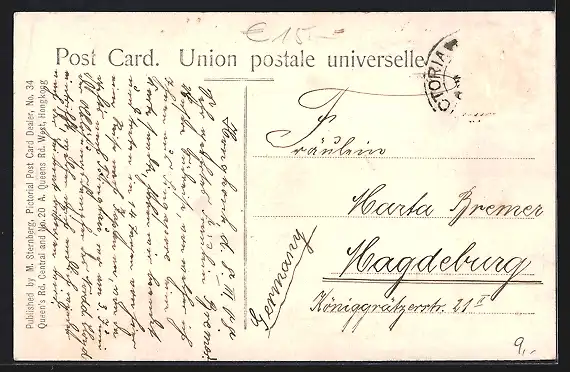 alte Ansichtskarte, gelaufen, Briefmarke entfernt, guter Zustand