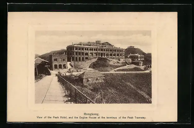 AK Hongkong, The Peak Hotel and the Engine House at the terminus of the Peak Tramway