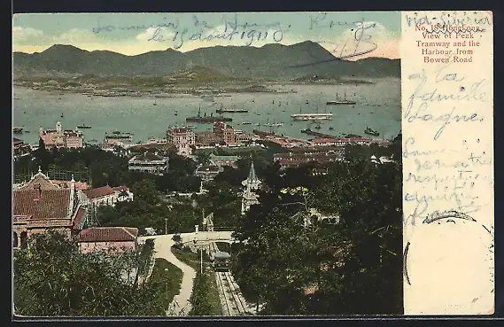 AK Hongkong, View of Peak Tramway and the Harbour from Bowen Road