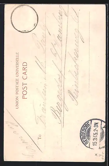alte Ansichtskarte, gelaufen 1905, Briefmarke entfernt, Eckknick re. oben, guter Zustand