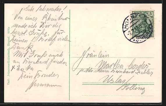alte Ansichtskarte, gelaufen 1913, Abriebspur re. unten, guter Zustand