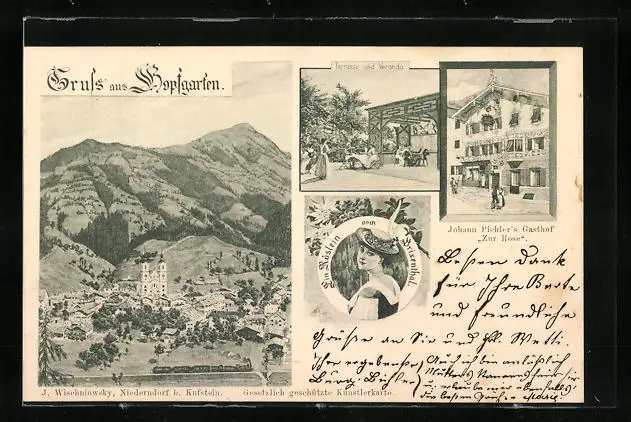 AK Hopfgarten, Gasthof Zur Rose, Terrasse und Veranda, Teilansicht