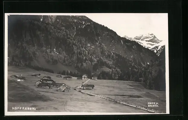 AK Hopfreben, Blick auf die Bauernhäuser am Hang