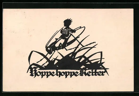 AK Hoppe, hoppe Reiter..., Ritt auf einem Grashüpfer, Scherenschnitt