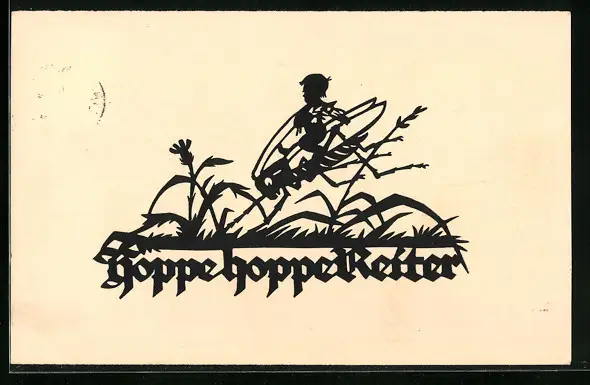 AK Hoppe, hoppe Reiter..., Ritt auf einem Grashüpfer, Scherenschnitt