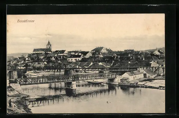 AK Horazdovice, Teilansicht mit Brücke
