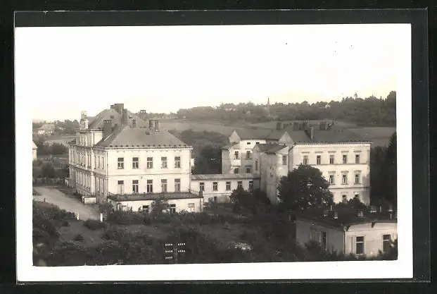 AK Horice, Ortspartie mit Feldern