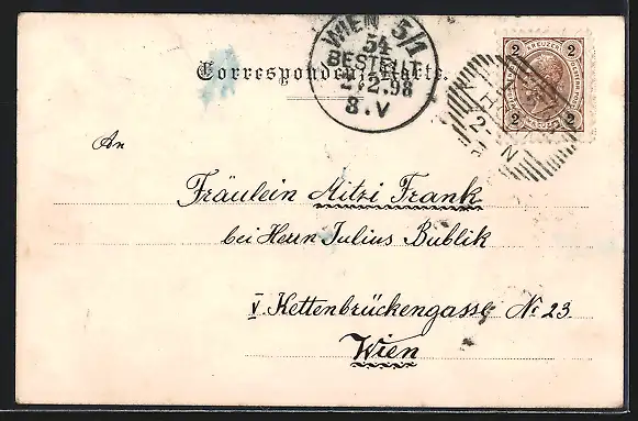 alte Ansichtskarte, gelaufen 1898, Stempelspur, guter Zustand