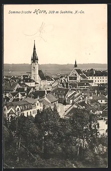 AK Horn /N.-Oe., Teilansicht mit Kirche und Strassenpartie