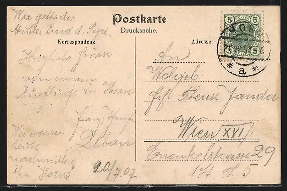 alte Ansichtskarte, gelaufen 1907, Stempelspur, guter Zustand